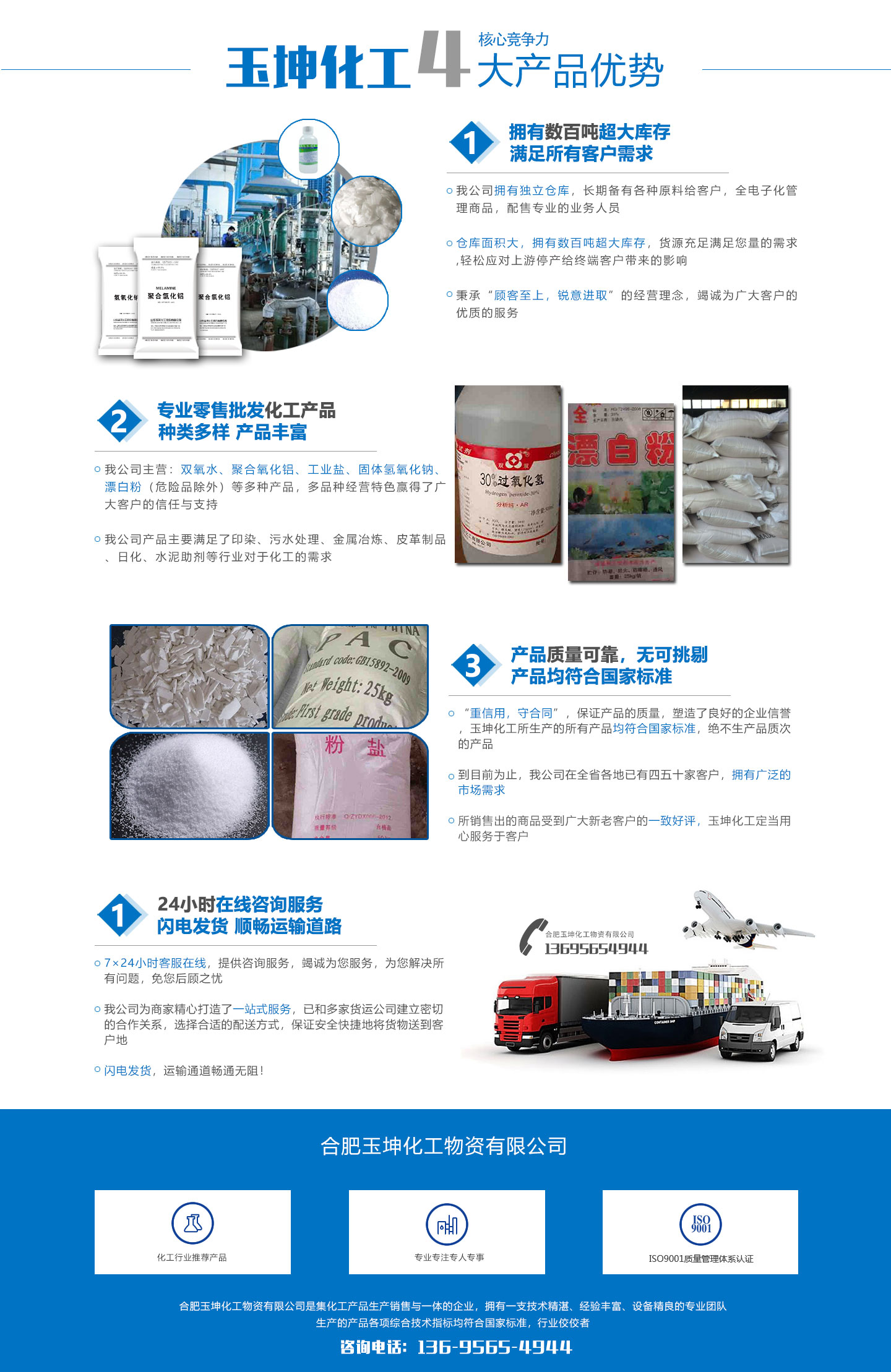 合肥玉坤化工物資有限公司自創(chuàng)辦以來,玉坤化工一直專注于化工行業(yè),在該領域具備了明顯的技術、生產(chǎn)和服務優(yōu)勢。我們堅持以技術為先導,持續(xù)進行產(chǎn)品開發(fā),不斷提高技術、生產(chǎn)水平;成立了研發(fā)中心,持續(xù)引進高素質技術人才,擁有一支認真負責的研發(fā)團隊。公司一貫遵循“以市場為導向、以質量求生存、以信譽拓市場”的發(fā)展思路,始終致力于為客戶提供產(chǎn)品和滿意的服務。我們將憑借技術人才、精良的設備、可靠的技術、科學的管理、服務,以“質量為先、信譽為重、管理為本、服務為誠”的理念,求真務實、銳意創(chuàng)新的開拓精神,積極圍繞公司的發(fā)展戰(zhàn)略目標,努力把公司建設成技術密集型、外向行、市場型的國內(nèi)先進的精細化...